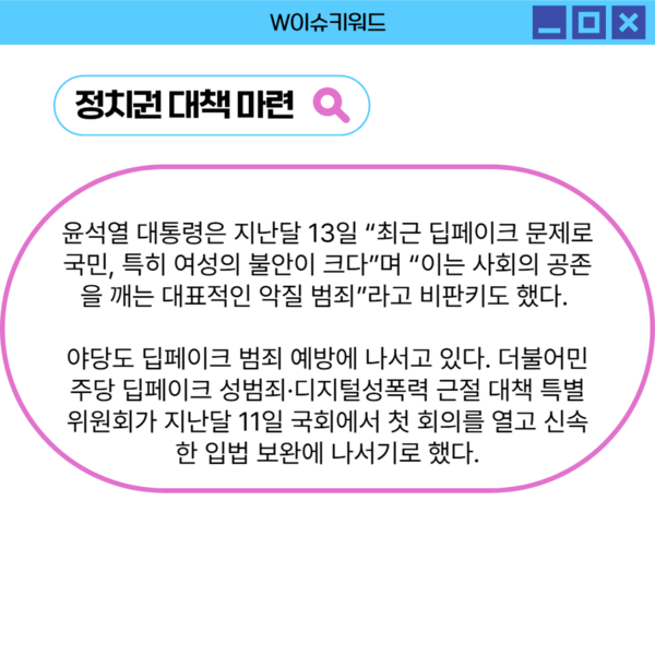 ⓒ김민정 기자 ⓒ김민정 기자 ⓒ김민정 기자 ⓒ김민정 기자 ⓒ김민정 기자 ⓒ김민정 기자 ⓒ김민정 기자 ⓒ김민정 기자 [W이슈 키워드] 딥페이크 진보당, ‘딥페이크 성범죄 방지’ 토론회 개최…“청소년 성교육 실태 진단” NGO‘소통과치유’, ‘대중문화 속 여성혐오의 양상들’ 강연 개최 키워드 #W이슈 키워드 #시사용어 #딥페이크 #전문용어 #인공지능 김민정 기자 kmj0109@womennews.co.kr 다른기사 보기 저작권자 © 여성신문 무단전재 및 재배포 금지 기사가 마음에 드셨나요? 저희 기사가 마음에 드셨다면 좋은 기사 후원하기를 해주세요. 여러분의 후원은 여성신문이 앞으로도 이 땅의 여성을 위해 활동 할 수 있도록 합니다. 소중한 후원금은 더 좋은 기사를 만드는데 쓰겠습니다. 여성신문 좋은 기사 후원하기 1,000원 3,000원 5,000원 10,000원 30,000원 50,000원 정기후원하기 후원하기 개의 댓글 회원로그인 댓글 내용입력 댓글 정렬 최신순 추천순 답글순 BEST댓글 BEST 댓글 답글과 추천수를 합산하여 자동으로 노출됩니다. 닫기 더보기 댓글삭제 삭제한 댓글은 다시 복구할 수 없습니다. 그래도 삭제하시겠습니까? 비밀번호 닫기 댓글수정 댓글 수정은 작성 후 1분내에만 가능합니다. 본문 / 400 비밀번호 닫기 내 댓글 모음 닫기