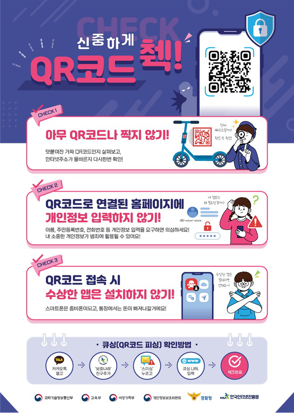 아울러 전국 5개 국립과학관과 10개 KISA지역정보보호지원센터 등을 통해 교육자료와 포스터 등 큐싱 주의사항을 홍보하고, 온라인 채널을 통해 예방 캠페인도 진행한다.
