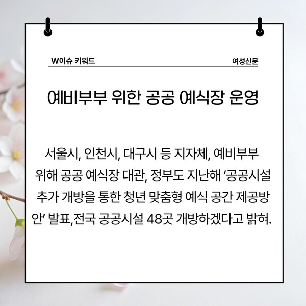 "출산율 끌어올리자"...혼인신고하면 100만원 준다는 서울시 [W이슈 키워드] 명품 소비 트렌드와 맞물린 ‘웨딩플레이션’ 대전시, 청년부부 결혼장려금 500만원 지급 서울시, 공공예식장 지원사업 인기... 예비부부 선택권 확대 신혼부부 '100만쌍' 첫 붕괴…무자녀 초혼부부 47% [W이슈 키워드 카드뉴스] WHO가 경고한 ‘의자병’, 여성 건강에도 위협 [W 키워드 카드뉴스] 아이와 부모 모두를 위한 여행, ‘키캉스’ 확산 [W키워드 카드 뉴스] 여성 혐오 살해 ‘페미사이드’